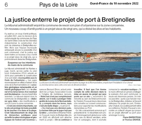 C’est grâce à vous tous, par votre fidèle soutien, que le passage en force tenté par le nouveau maire de Bretignolles pour imposer son projet de port est actuellement mis en échec.