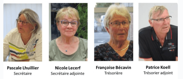 Les responsabilités de secrétaires (Pascale LHUILLIER et Nicole LECERF) et de trésoriers (Françoise BECAVIN et Patrice KOELL) restent inchangées.