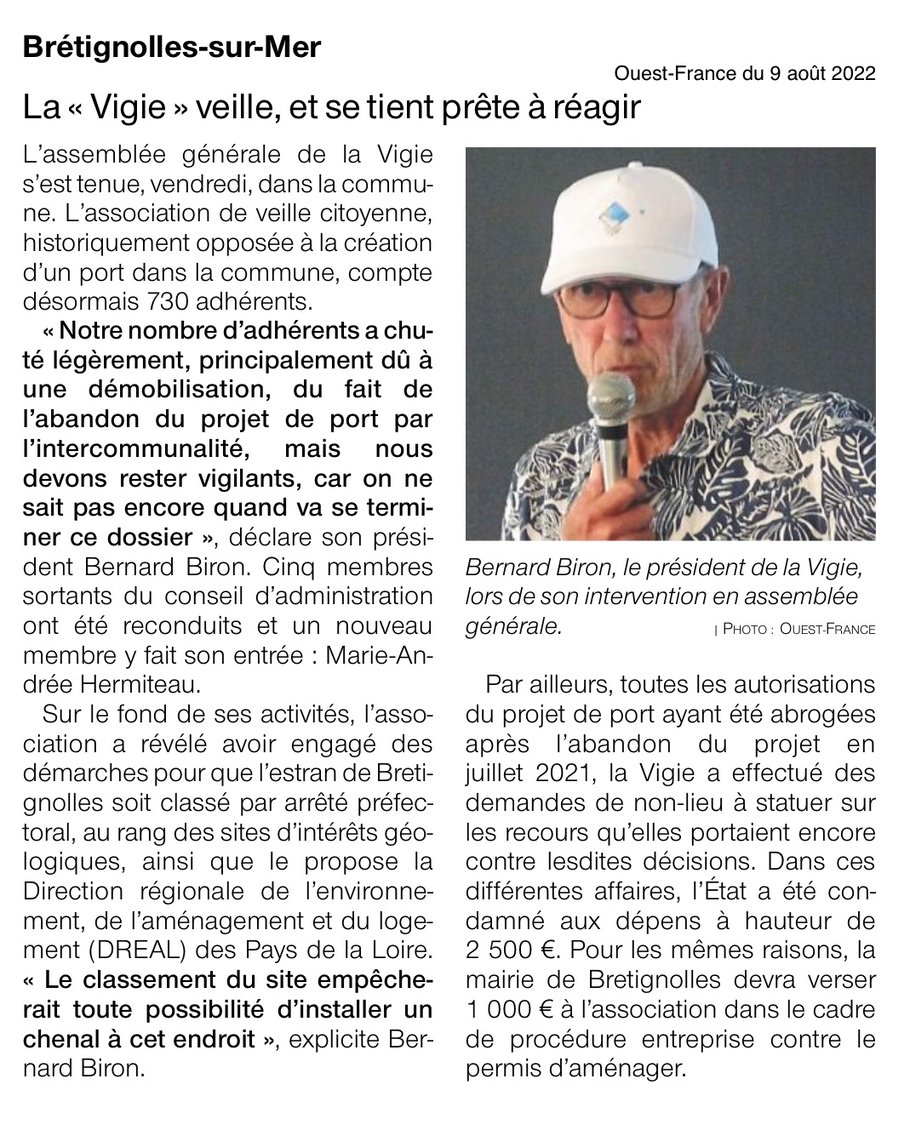 Notre objectif est de montrer que la Vigie sera toujours vigilante sur tout aménagement envisagé par la municipalité. Nous ne manquerons pas, lors de cette réunion, de montrer notre désaccord face à la volonté du maire de réaliser un port à flot à la Normandelière.