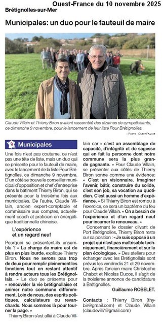 La campagne électorale des municipales de mars 2026 a débuté à Brétignolles sur mer. Durant cette période, nous vous tiendrons